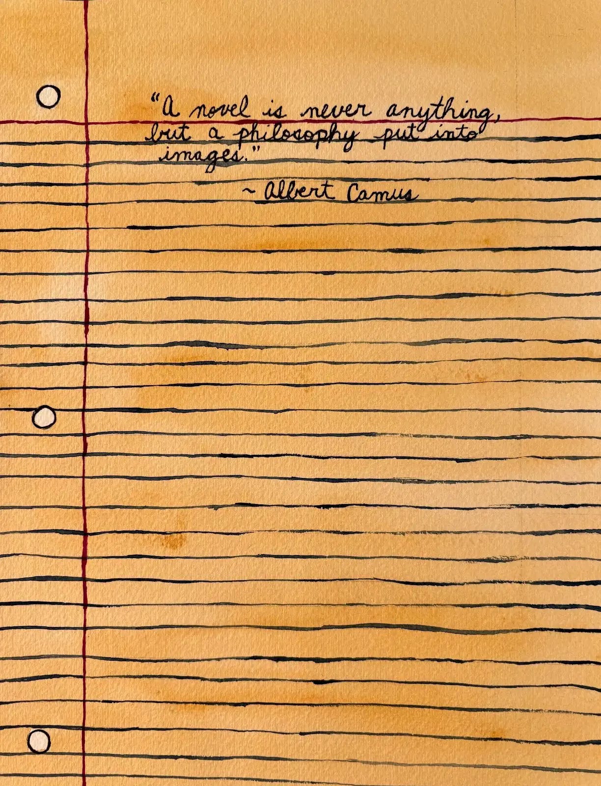 As a kid, my favorite thing about Fall was back-to-school supplies. (Reminder: stock up on some oil pastels for next week, GUT!) My first painting canvas was unwashed blue denim stretched around a Mead three-ring binder. It was there that I first experimented with typography (bubble letters!), learned the aesthetic value of a good lyric and/or quote, and perfected cross-eyed cartoon characters. I also loved binder paper. The magenta and cyan lines. All the potential an empty page offers. I could — we could — do anything on that paper.