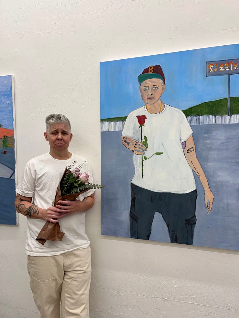 Ali is an artist, a writer, and a poet. She is the author of four books: The Beautifully Worthless, The IHOP Papers, Cha-Ching!, and her novel-in-prose The Summer of Dead Birds. I first encountered her writing and poetry when she lived in SF. She was active in the queer literary scene, and working at Rainbow Grocery (which is its own scene - IYKYK). She was invited to write for the groundbreaking television show Transparent, moved to LA, and has continued to have a pretty amazing career in TV, going on to write for The Sex Lives of College Girls, The Conners, Little America, Love Life, Big Mouth, I Love That For You, and Beast in Me. And while she writes, she paints.