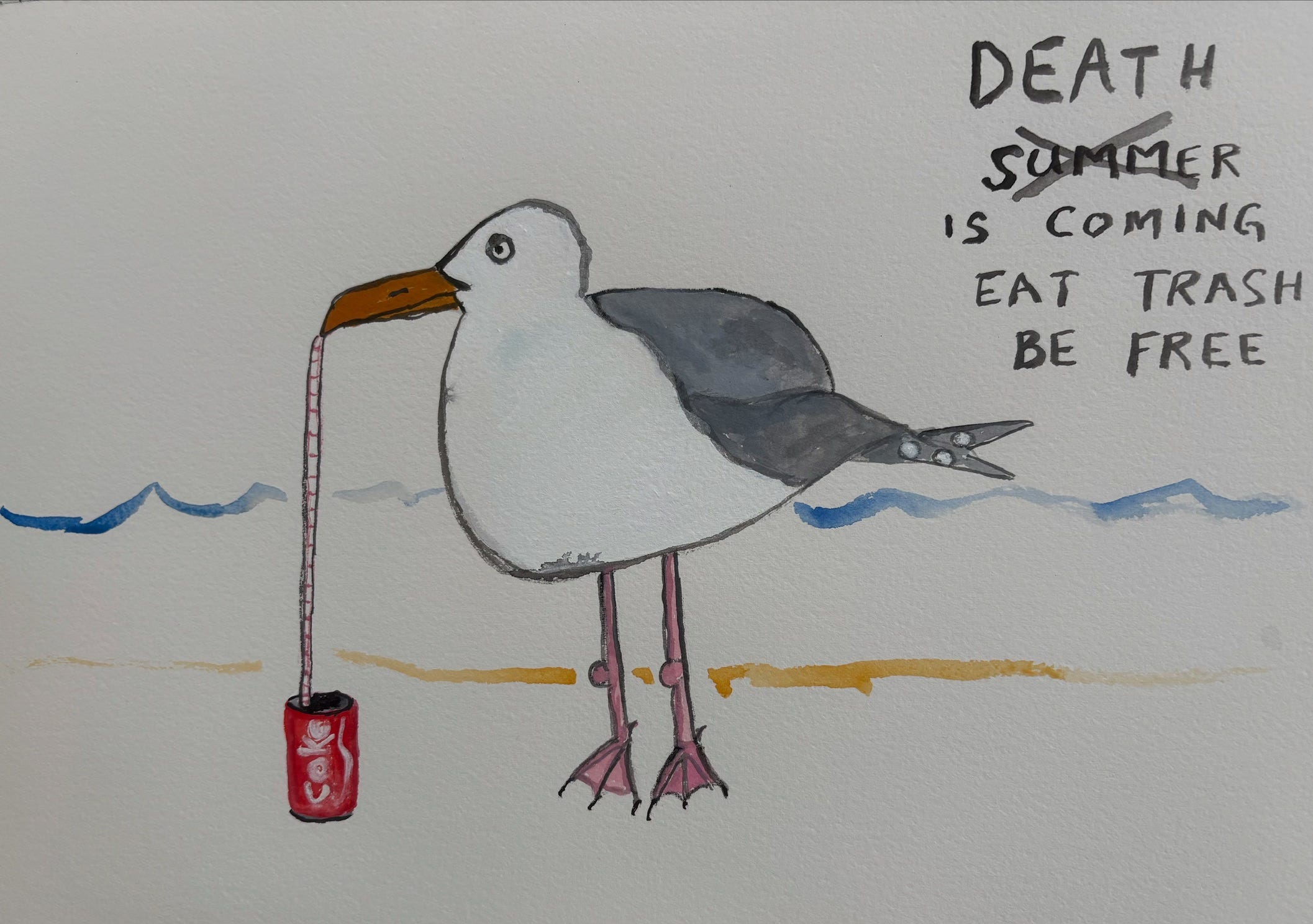 There is a series of paintings Ali made a while back that I love. She paints classic binder paper and uses that as a foundation or background for a text painting. They feel accessible and universal. And they are deceptively simple. A concise headline and a few hatch marks can convey a lot of dark humor and ton of depth and feeling. Here’s Ali on the series: