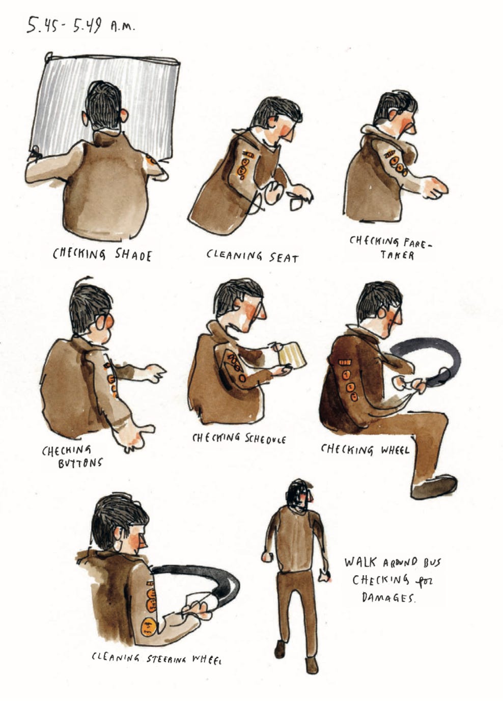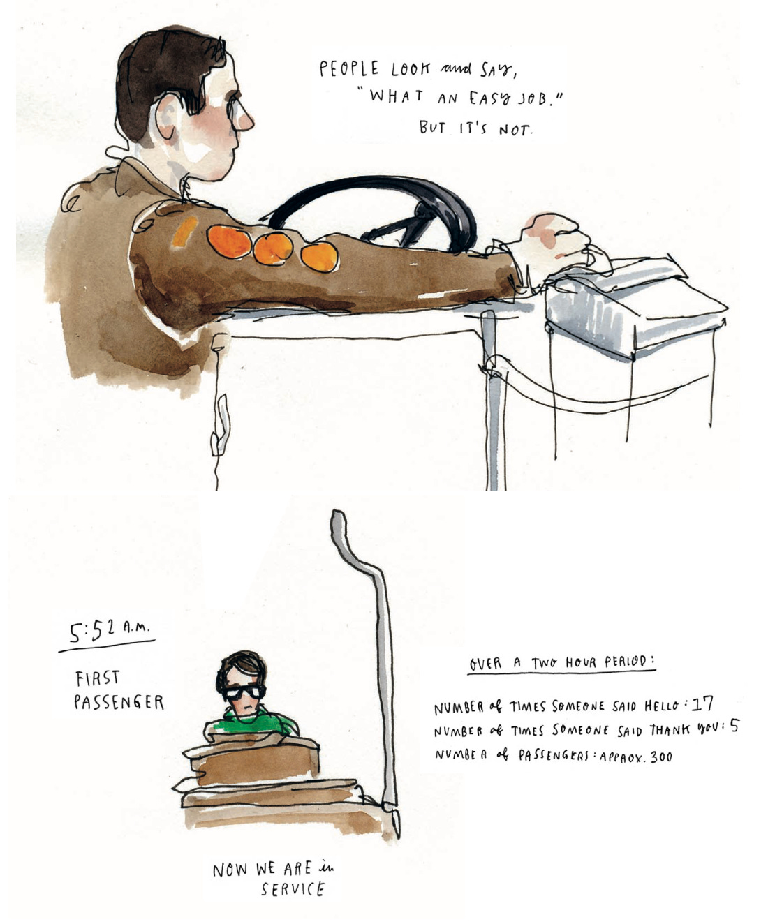 Step 1: Pay attention to the interactions you have today. With that extra attention, where do you see effort and care being done by those around you? Taking a sketchbook around the city is one way to widen the scope of your attention, but not the only way. As you shop for groceries, get a cup of coffee, or heck, listen to the weather report on the radio, keep your eyes and ears open for the small things people around you are doing as part of their jobs and work. Try and scribble five things down.