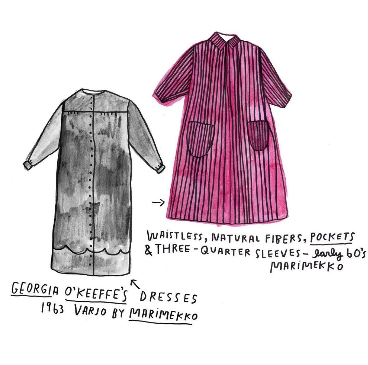 Artist, Illustrator and educator Kate Bingaman-Burt has long documented every single thing she buys, including her clothes. It’s such a cool way to think about our consumption, be grateful for the things we have, and be aware of the things we do not need. She also has documented other people’s clothing.