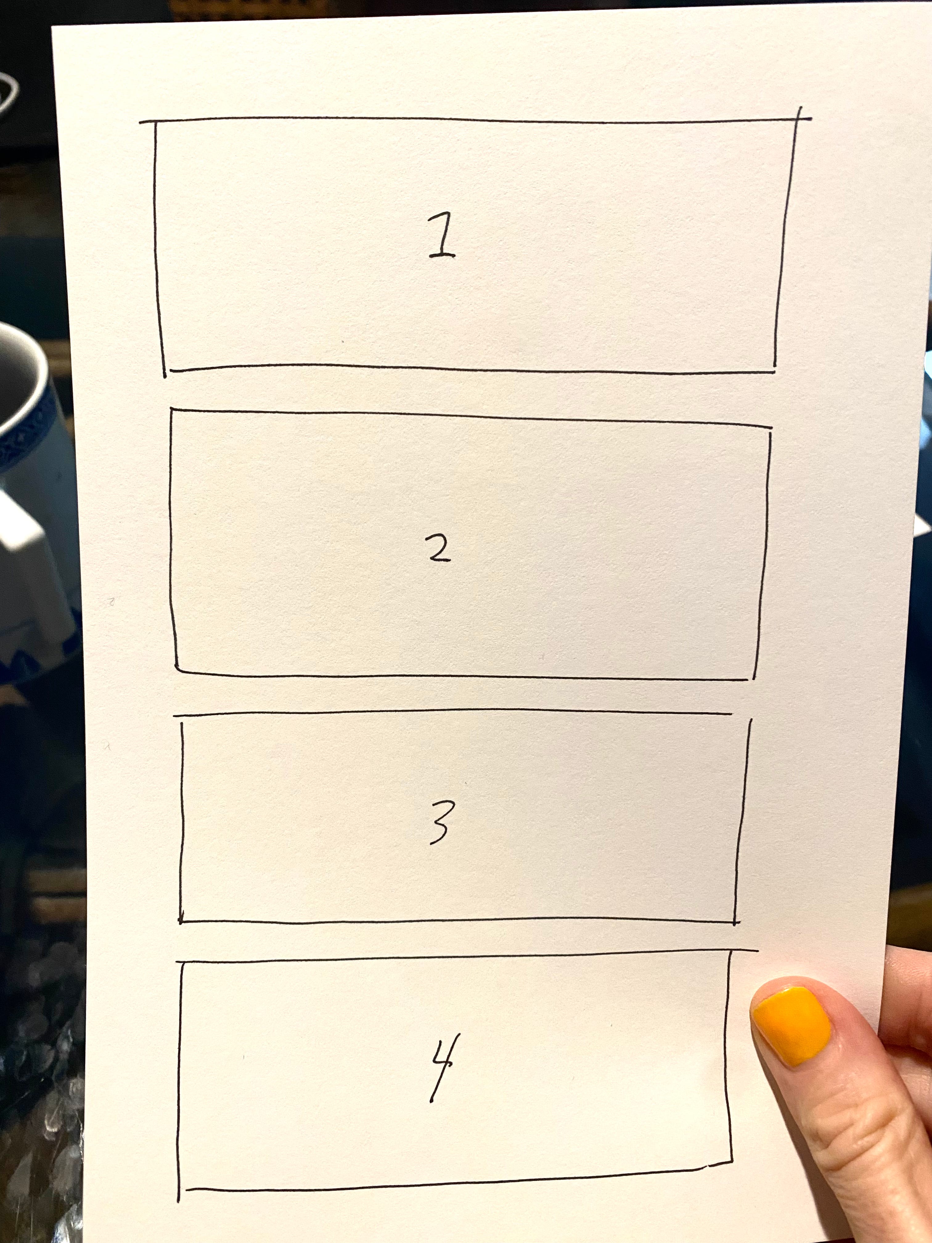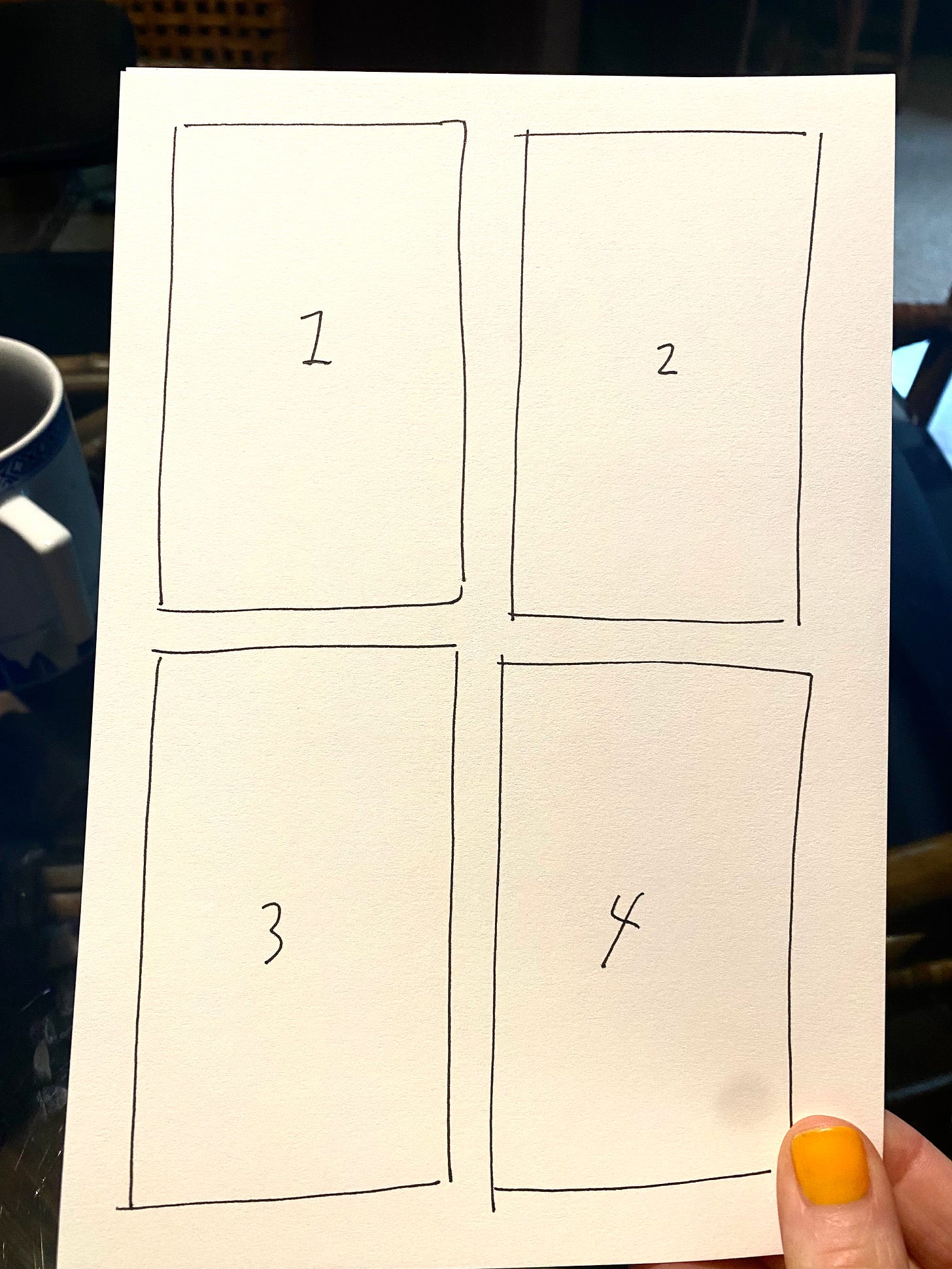 So first things first, let’s draw our four frames. I’m going to do TWO examples, and you can choose which one works for you. (Or make up some other one!)