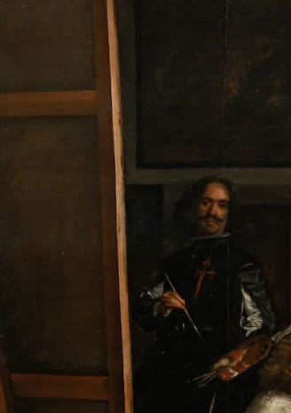 Diego Velázquez’s Las Meninas (The Ladies in Waiting, 1656) is a whopping 10 feet by 9 feet wide. In it, Velazquez showcases all that painting can do —light, color, perspective, narrative. He even includes a painting of himself painting the painting in the painting itself! 🤯
