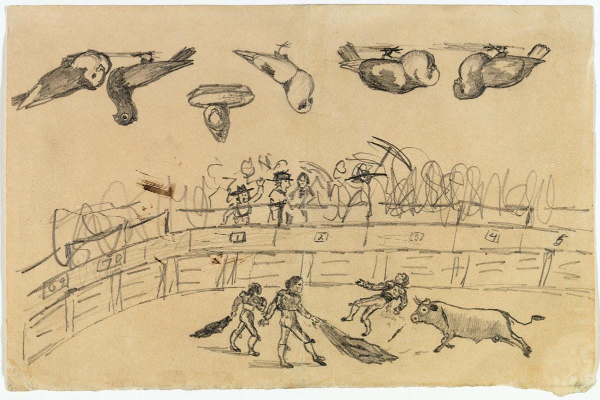 Love or hate what you’ve heard of him as a person1, it’s hard to deny Picasso pushed every creative boundary in his time. Incredibly prolific, he created an estimated 50,000 works in his lifetime. While most know him for his paintings and sculptures, he was also an incredible draughtsman. According to family legend, his first word was “pencil.” His artist father taught him drawing in early childhood and at age 9, he drew this: