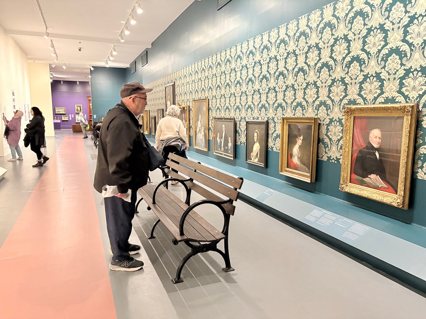 As power and perspectives evolve and change, curators and historians (and all of us) grapple with what to do with things like seated portraits that symbolized wealth and power — and now are widely understood to represent past and present oppression. Instead of tossing these portraits out and denying the past, the curators chose to position the portraits low on the wall, offering viewers seats to sit and look at them, eye to eye, and consider what they mean to us today.