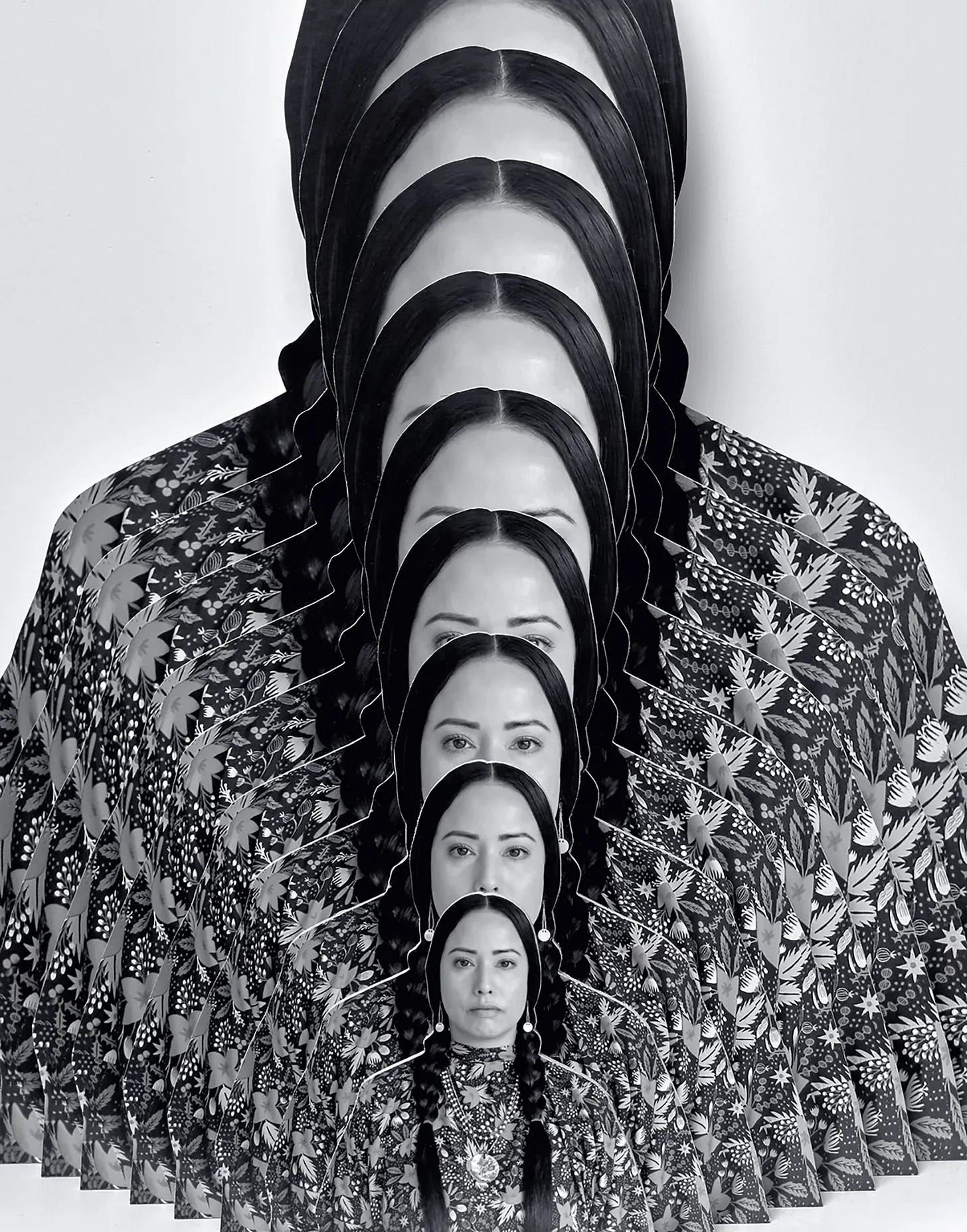 She first gained renown with work she made in graduate school, Four Seasons. She posed in colorful garments next to inflatable animals and fake backdrops in a cheeky critique of stereotypes and museum dioramas portraying Native people. By placing herself in the image, she called attention to history’s focus on men — warriors and chiefs (that is, if American history features Native people at all) — and demanded a greater focus on women.