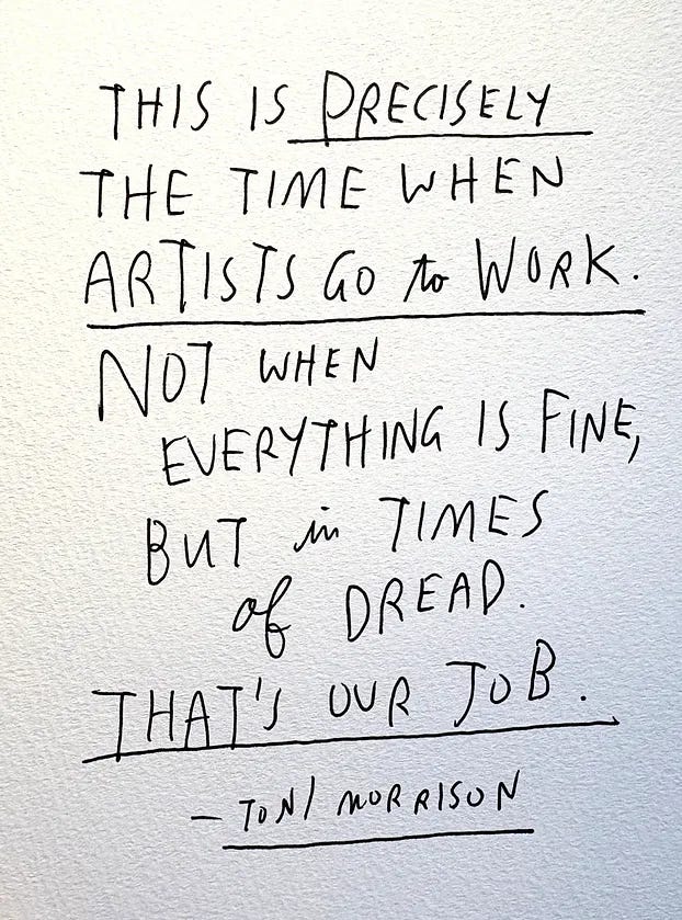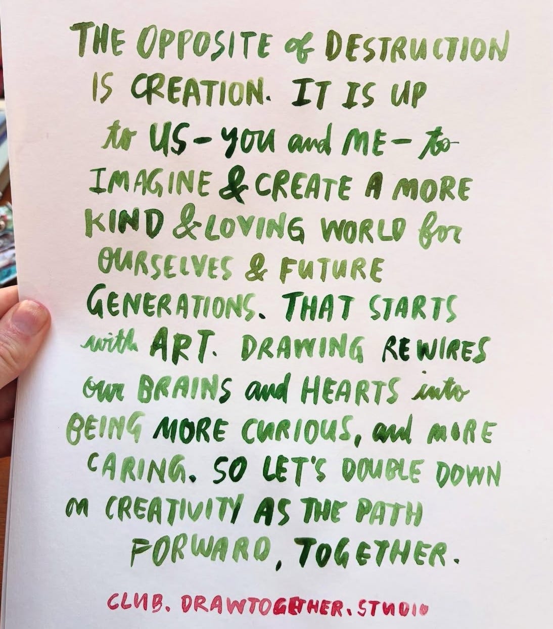 Special Note: I’m removing the paywall to make this series on Creative Action FREE for all. We can only do this with the support of subscribing members. If you appreciate programs like this and want to support DrawTogether’s work in the world, please become a member. A little bit goes such a long way to keep DrawTogether’s work going and growing. Thank you. xoxo, w