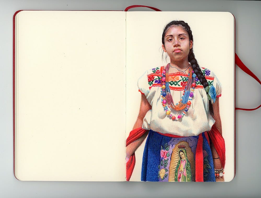 Nicholas V. Sanchez started sketching in ballpoint on his subway commute and then began incorporating ballpoint more into his studio practice. He says, “The inability to erase… is both the beauty and challenge of drawing in ink.” I’ve featured him before in my lesson on sketchbooks. Prepare to pop your eyes back into your head!