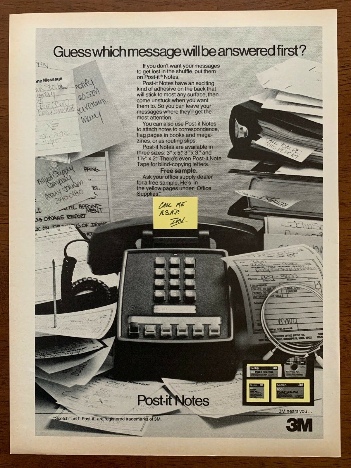 Art Fry can’t take all the credit, tho. The Post-it’s gentle adhesive was invented by Spencer Silver in 1968 while he was trying to develop a stronger glue. But he thought this weaker adhesive still had potential. He just didn’t know what to do with it.