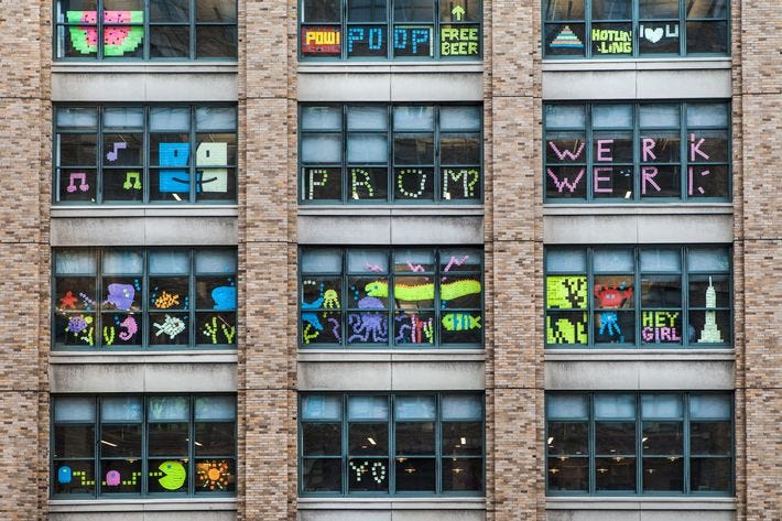 In 2016, ad agencies launched a “war” with their neighbors in New York City via Post-it mosaics! It started innocently enough, with a “Hi” on one side, which garnered a “Sup?” from the other, and then it eventually escalated into this: